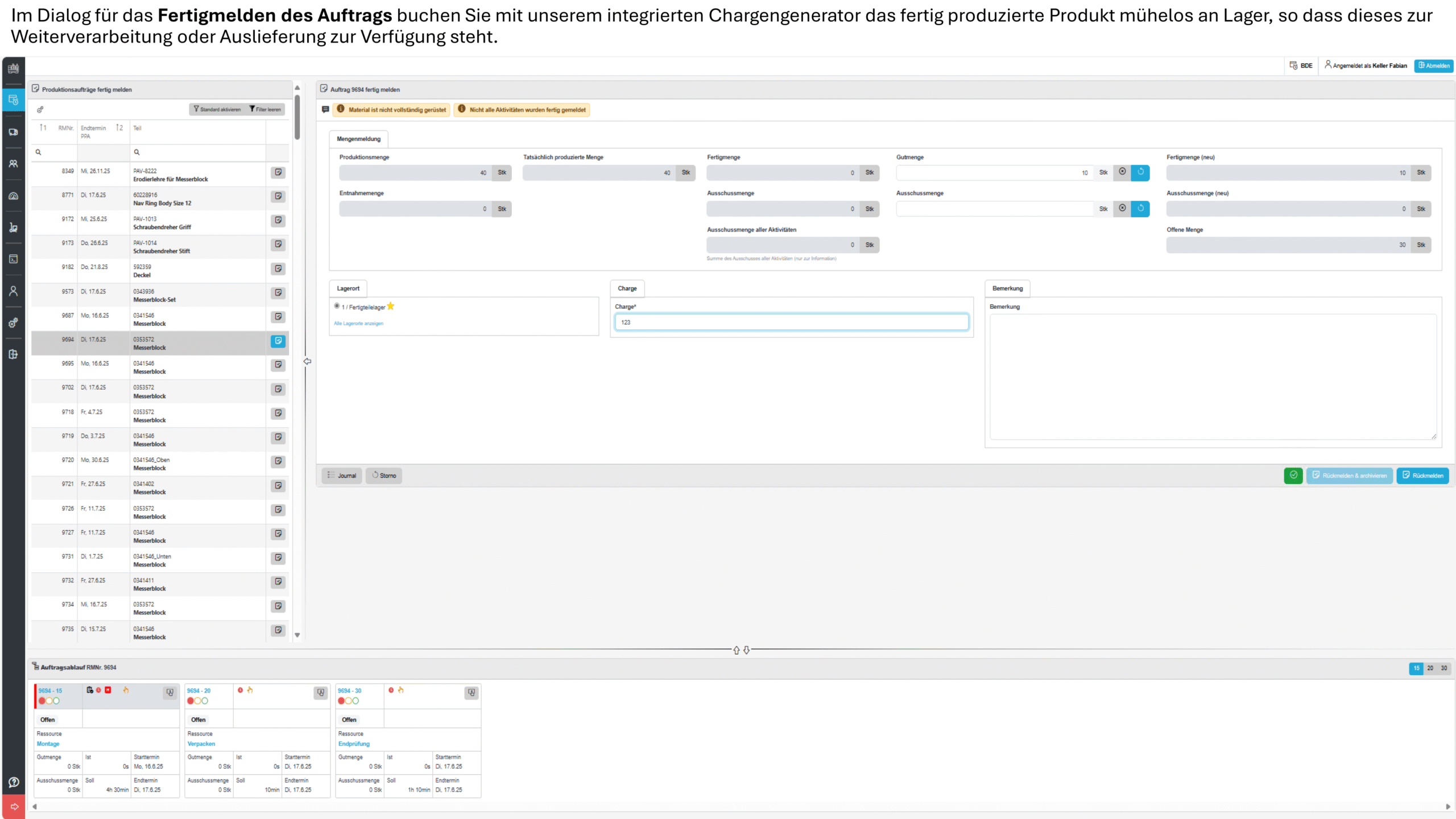 Materialbuchungen, Stempeln auf Aktivitäten, Fertigmelden ans Lager, Anbindung Ihrer Personalzeiterfassung